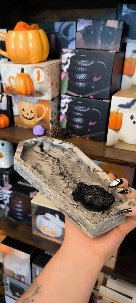 Plateau Cercueil en Jesmonite – Cœur en Relief