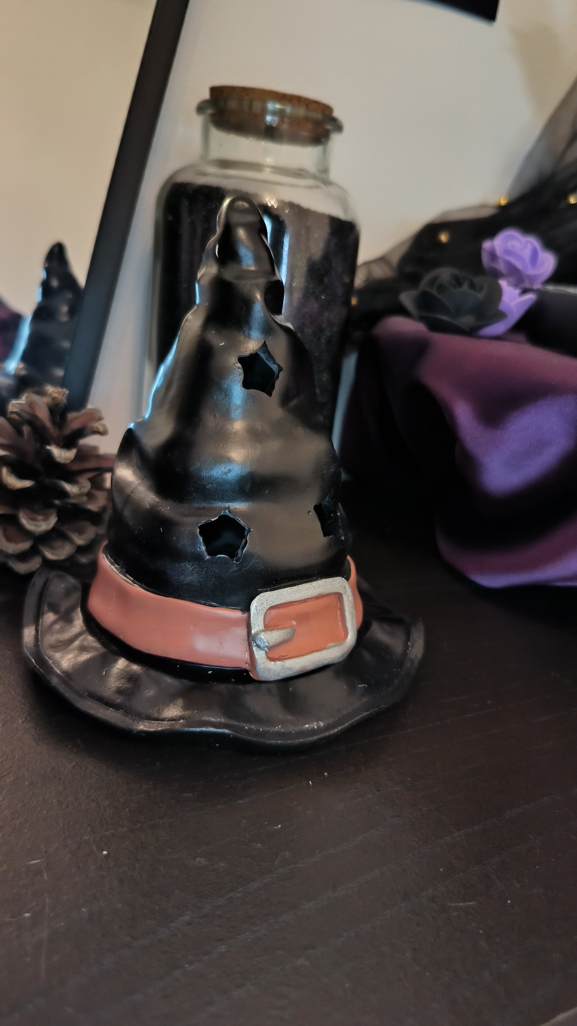 Placez un cornet d'encens qui couve sous ce petit chapeau de sorcière et observez la fumée s'échapper doucement des étoiles découpées. Idéal à la fois pour Halloween et pour les décorations de sorcières tout au long de l'année.