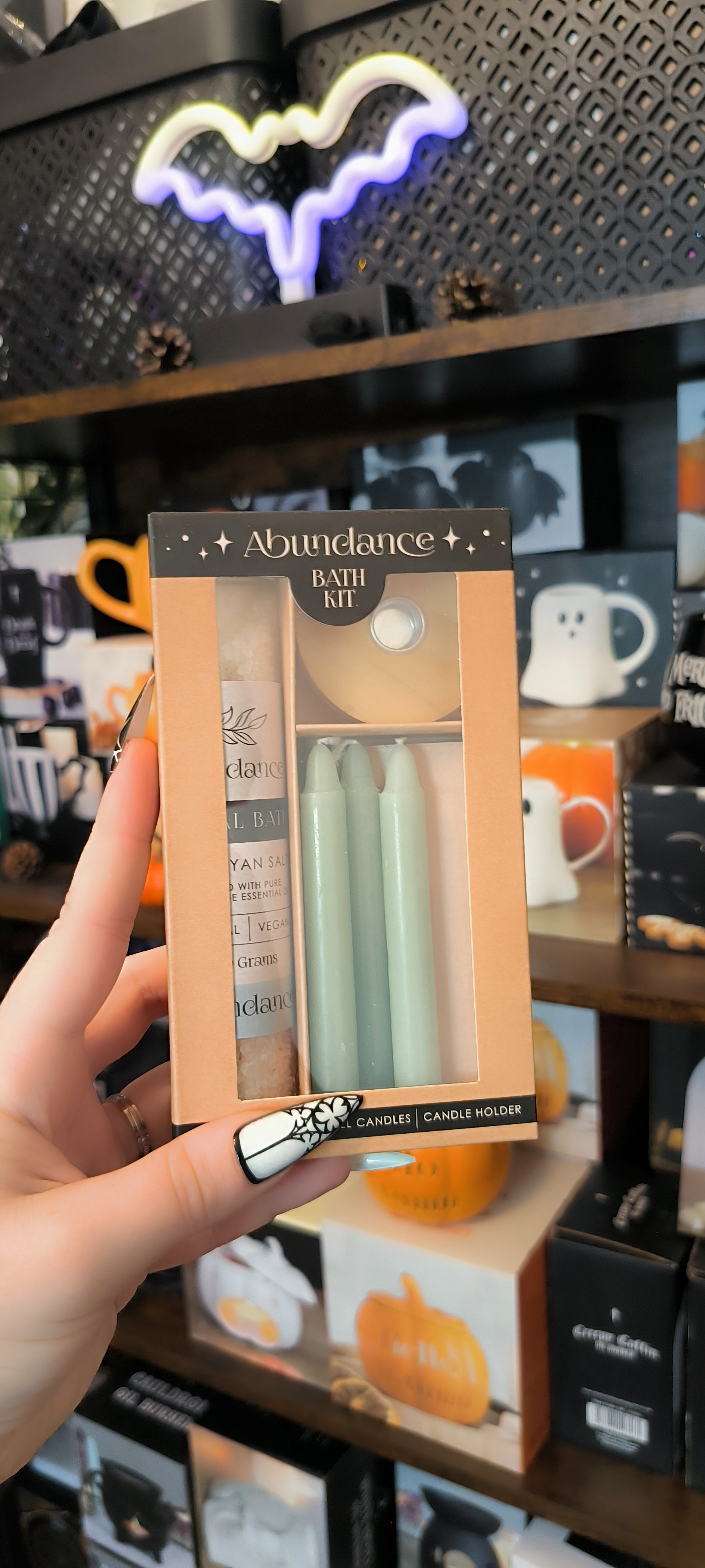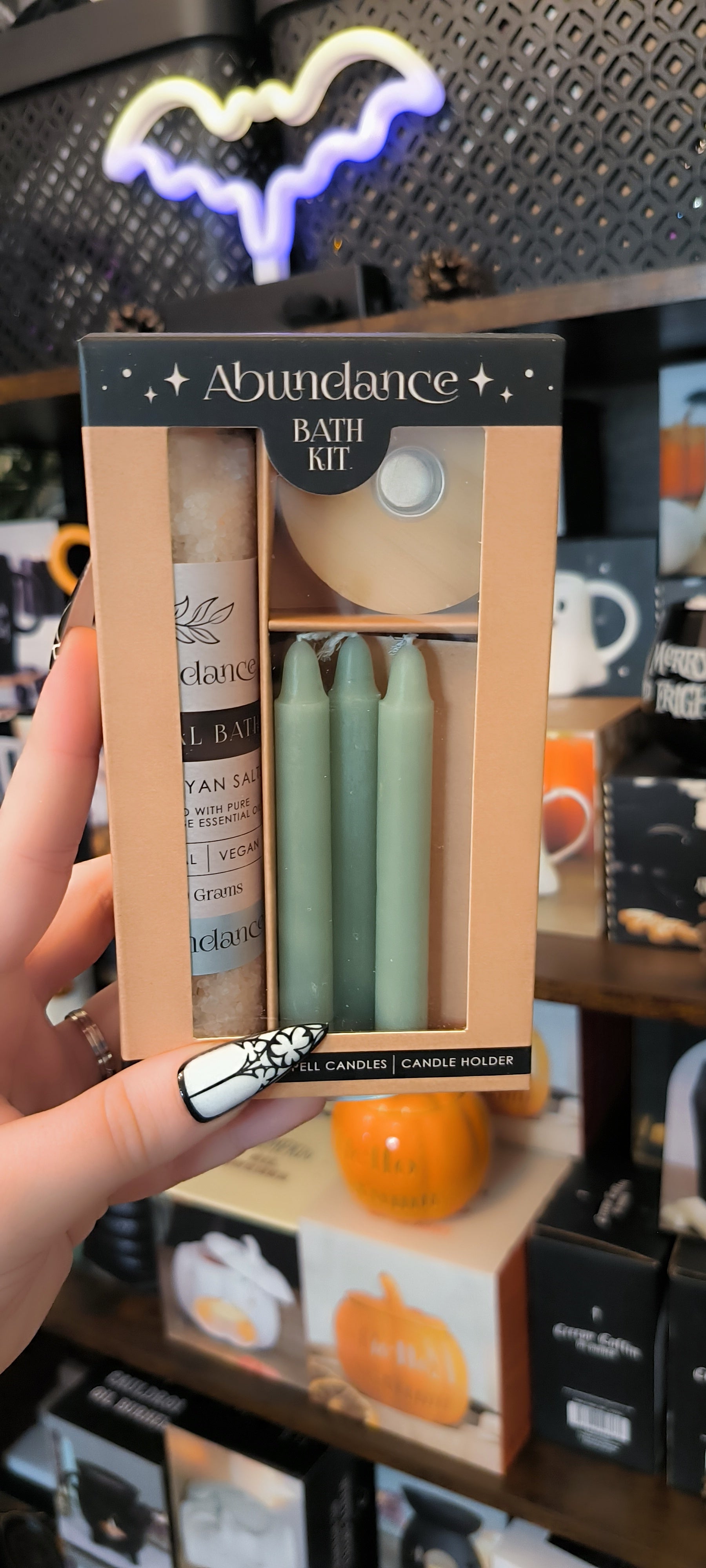 Encouragez l'abondance, la prospérité et la gratitude avec le kit de bain rituel Abundance. Le kit comprend 100 g de sels de bain rituels, un lot de 4 bougies Green Spell et un bougeoir. Les sels de bain naturels et végétaliens sont fabriqués avec du sel de l'Himalaya et imprégnés de l'arôme apaisant de l'huile essentielle de sauge sclarée. Visualisez un objectif, allumez une bougie verte et manifestez le résultat final tout en prenant un bain nettoyant.